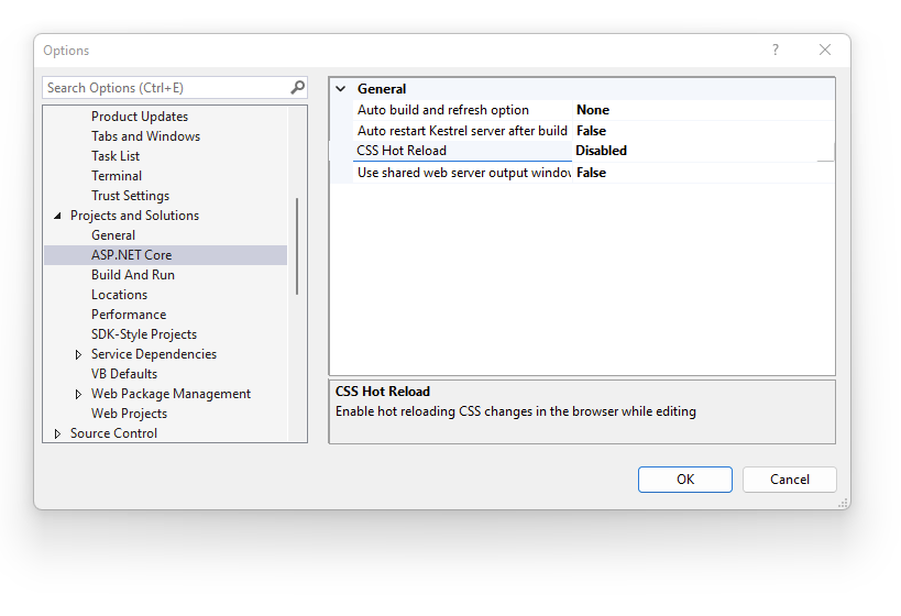 Nach langem Suchen fand ich heraus, dass dies an der Eisntellung "CSS Hot Reload" lag. Sobald ich diese Einstellung deaktiviert hatte, lief alles wieder im gewohnten Tempo. Die Einstellung befindet sich unter Debug => Options... => Projects and Solutions => ASP.NET Core